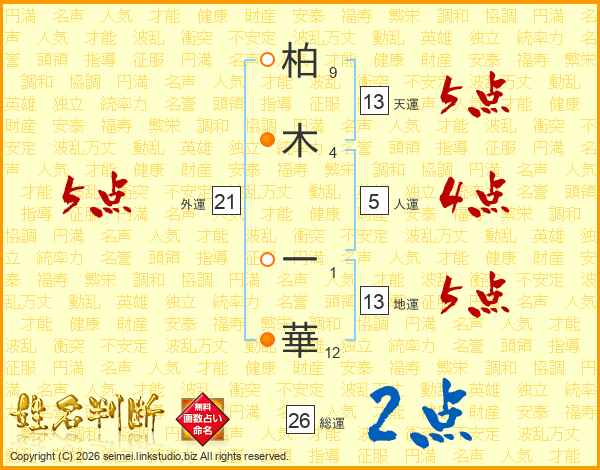 柏木一華さんの天運は13画の5点!
