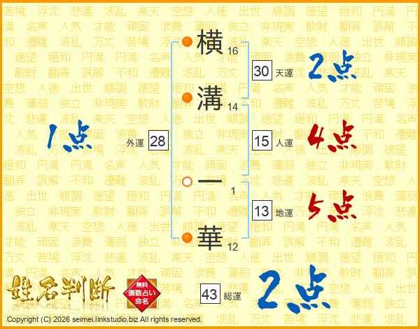 横溝一華さんの天運は30画の2点!