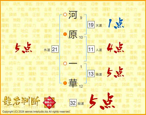 河原一華さんの総運は32画の5点!