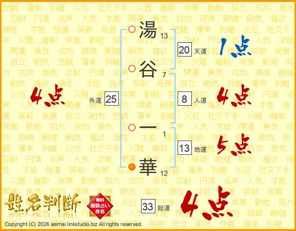 湯谷一華さんの総運は33画の4点!