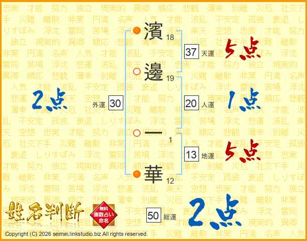 濱邊一華さんの天運は37画の5点!