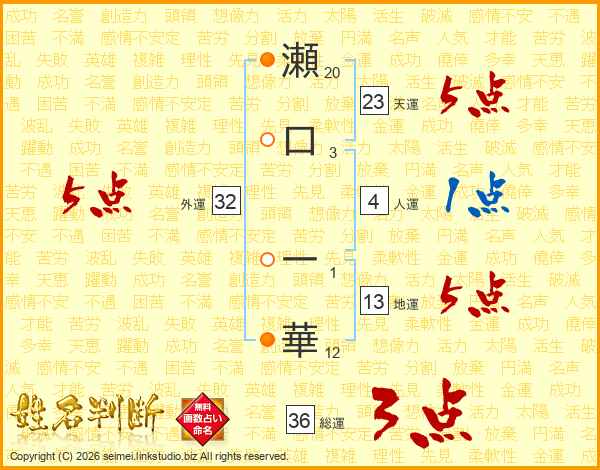 瀬口一華さんの天運は23画の5点!