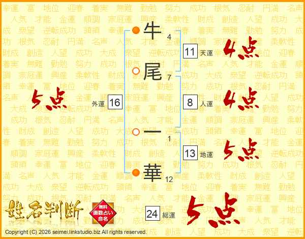牛尾一華さんの外運は16画の5点!