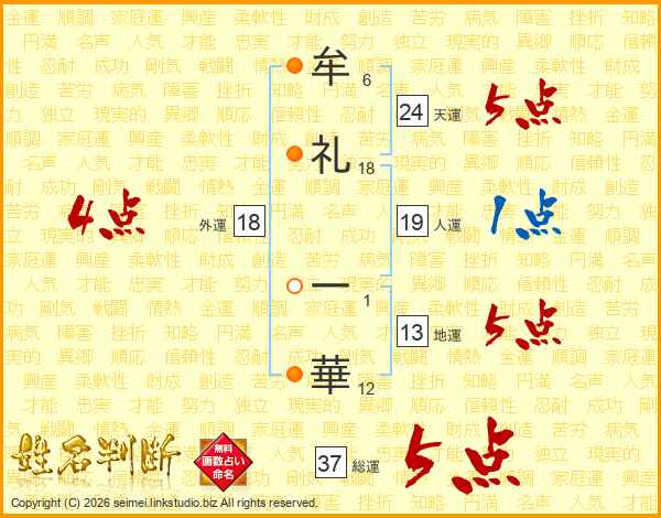 牟礼一華さんの総運は37画の5点!