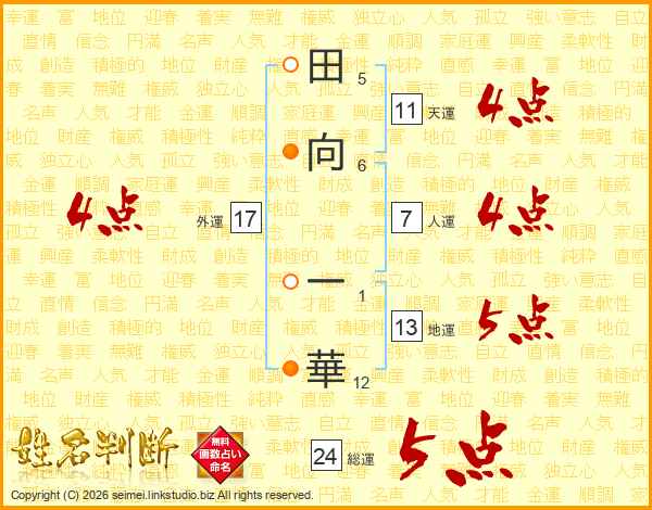 田向一華さんの総運は24画の5点!