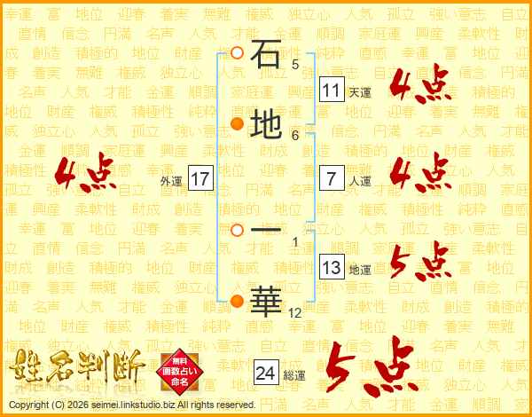 石地一華さんの天運は11画の4点!