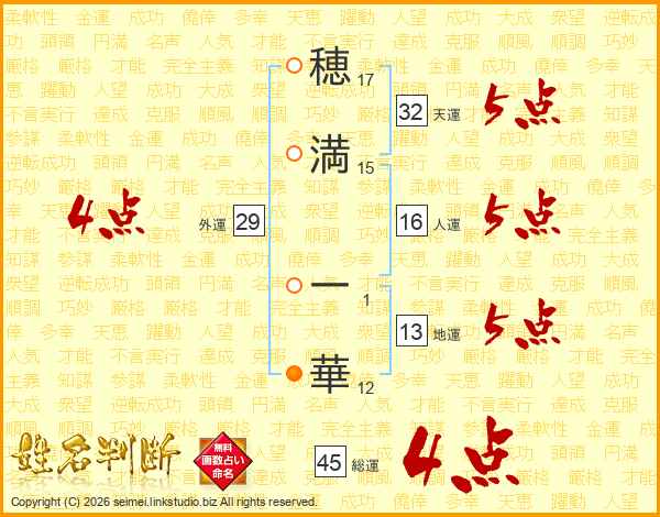 穂満一華さんの総運は45画の4点!
