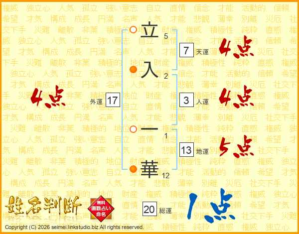 立入一華さんの地運は13画の5点!