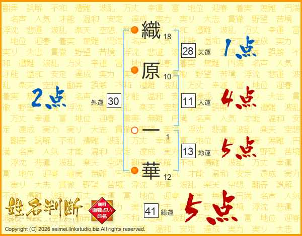 織原一華さんの総運は41画の5点!