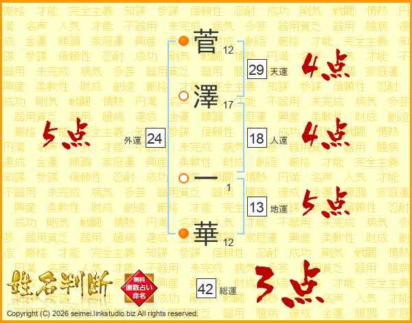 菅澤一華さんの天運は29画の4点!