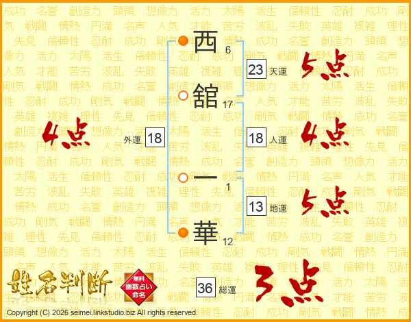 西舘一華さんの天運は23画の5点!
