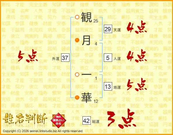 観(25画)月(4画) 一(1画)華(12画)