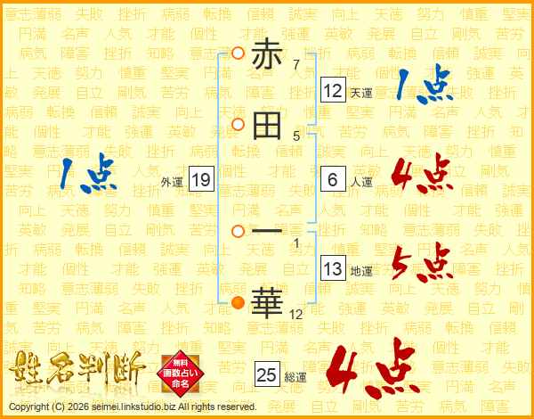 赤田一華さんの天運は12画の1点!