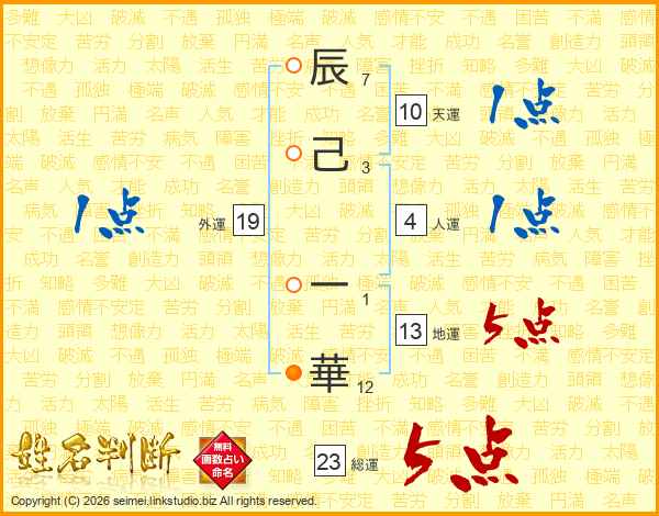 辰己一華さんの総運は23画の5点!