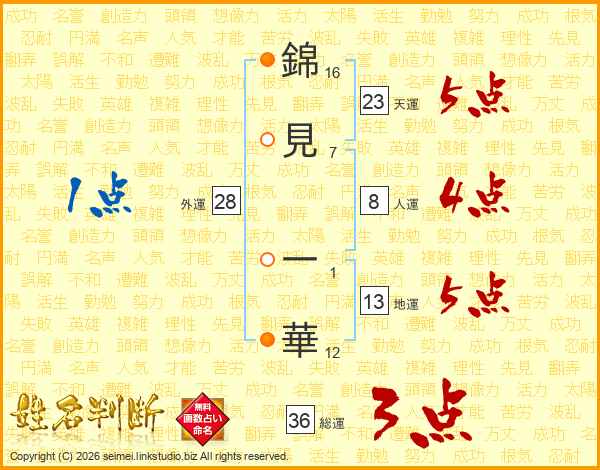 錦見一華さんの天運は23画の5点!