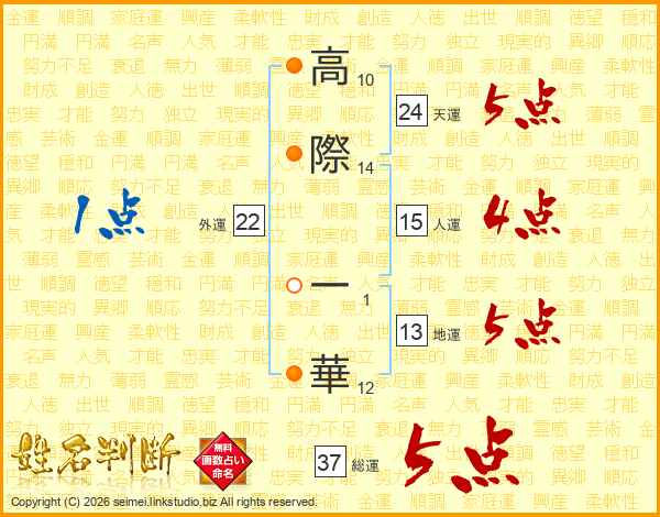 高際一華さんの総運は37画の5点!