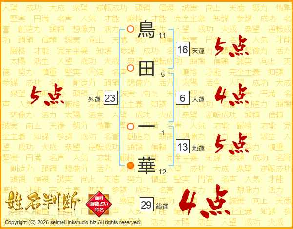 鳥田一華さんの総運は29画の4点!