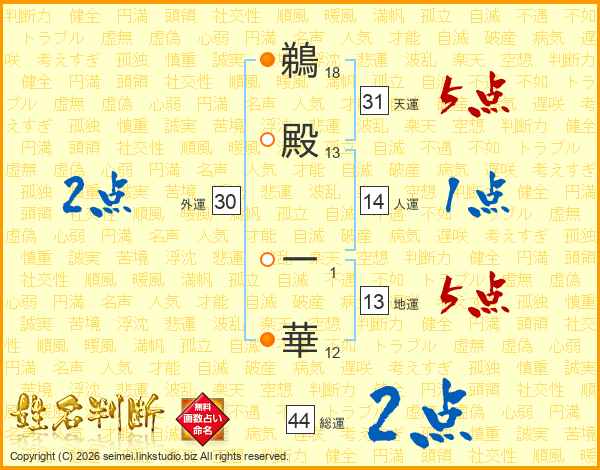 鵜殿一華さんの総運は44画の2点!