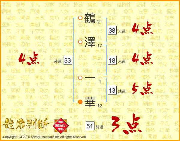 鶴澤一華さんの外運は33画の4点!