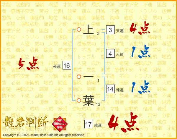 上一葉さんの総運は17画の4点!