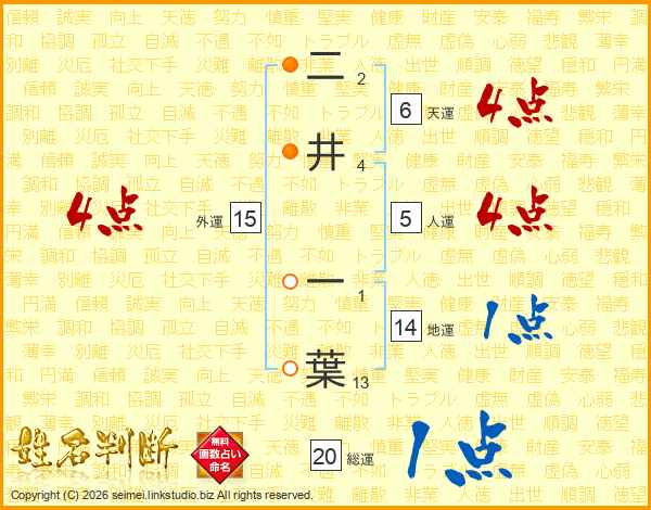 二井一葉さんの総運は20画の1点!