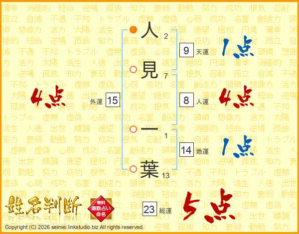 人見一葉さんの総運は23画の5点!
