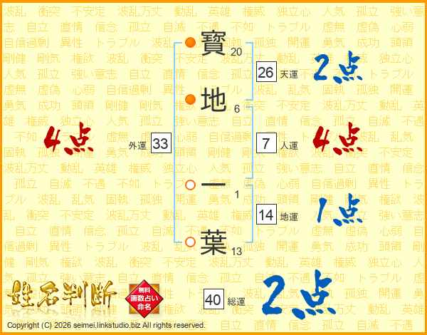 寳地一葉さんの総運は40画の2点!