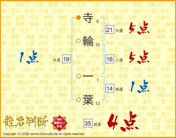 寺輪一葉さんの総運は35画の4点!