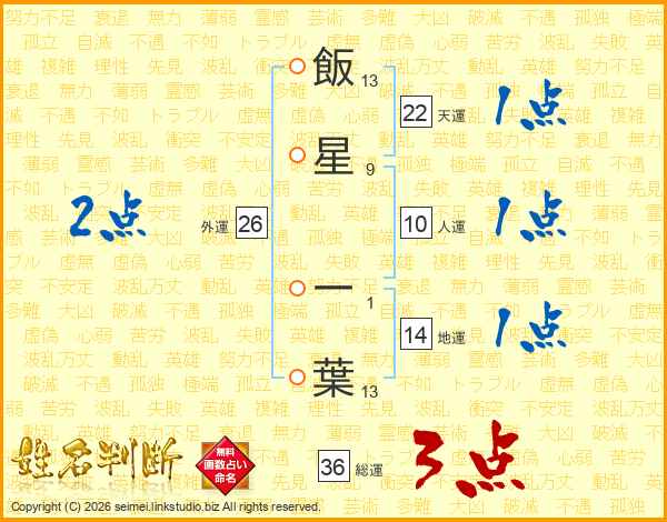 飯(13画)星(9画) 一(1画)葉(13画)