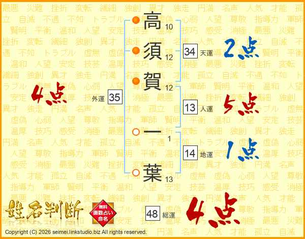 高須賀一葉さんの総運は48画の4点!