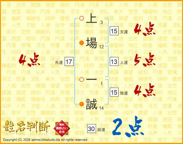 上場一誠さんの総運は30画の2点!