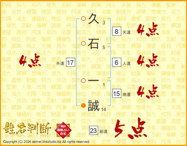久(3画)石(5画) 一(1画)誠(14画)