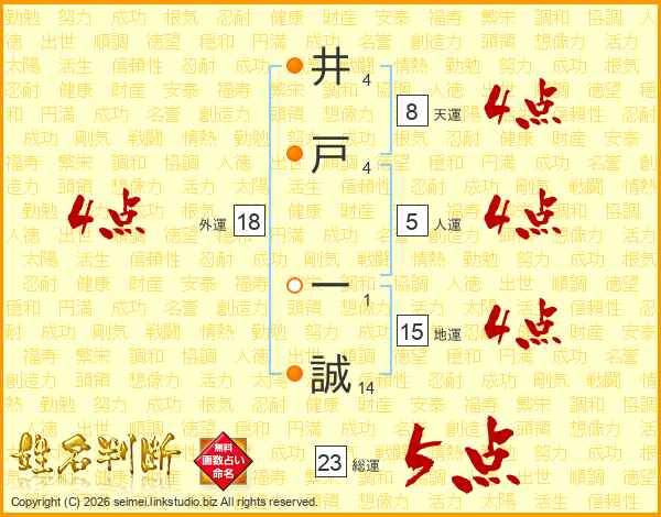 井戸一誠さんの総運は23画の5点!