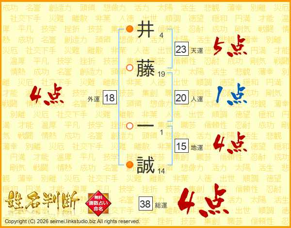 井藤一誠さんの総運は38画の4点!