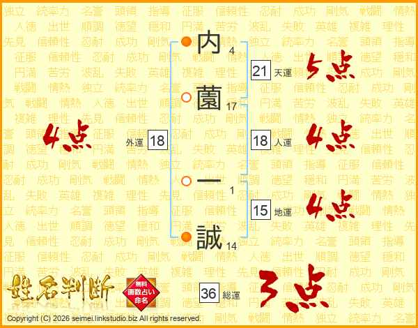 内薗一誠さんの天運は21画の5点!