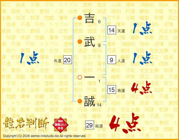 吉武一誠さんの総運は29画の4点!