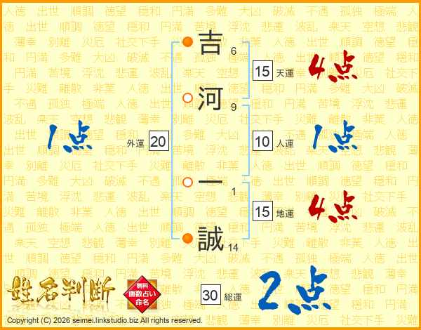 吉河一誠さんの総運は30画の2点!