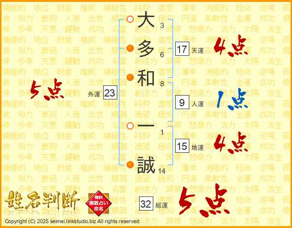 大多和一誠さんの総運は32画の5点!