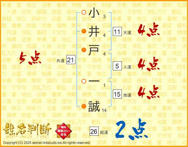 小(3画)井(4画)戸(4画) 一(1画)誠(14画)