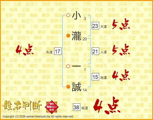 小瀧一誠さんの総運は38画の4点!