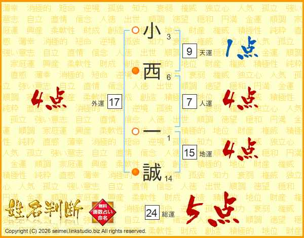 小西一誠さんの総運は24画の5点!
