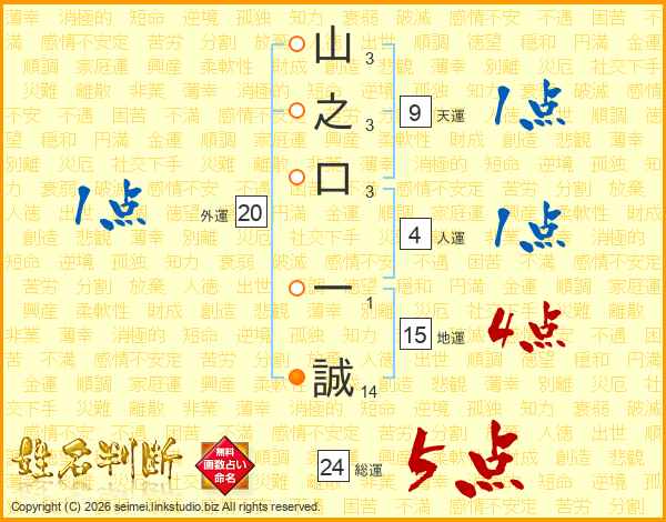 山之口一誠さんの総運は24画の5点!