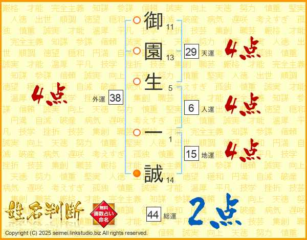 御園生一誠さんの総運は44画の2点!