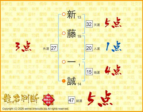 新藤一誠さんの総運は47画の5点!