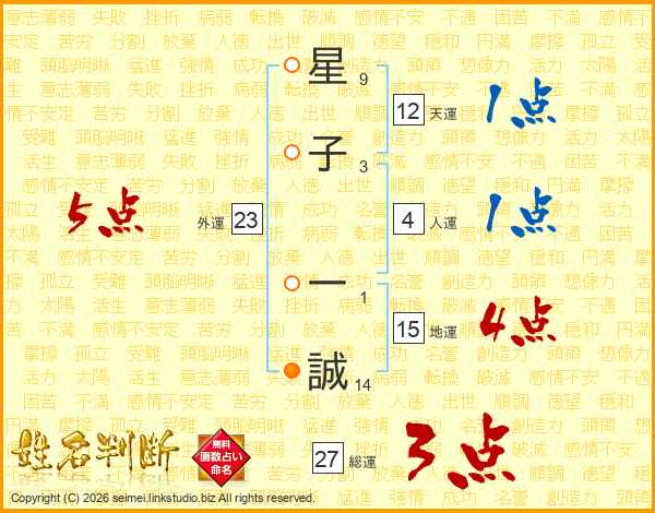 星(9画)子(3画) 一(1画)誠(14画)