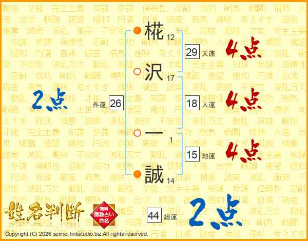 椛沢一誠さんの総運は44画の2点!