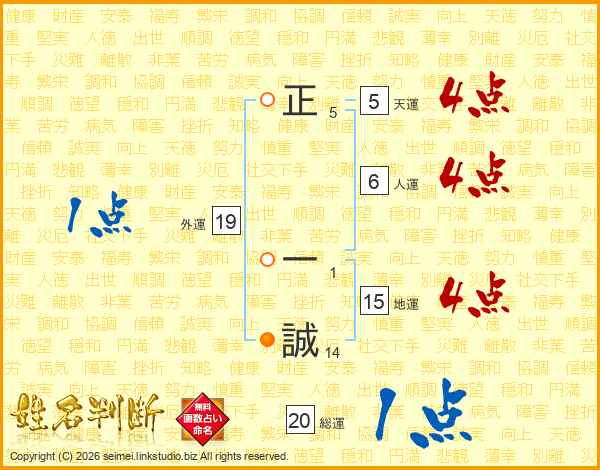 正一誠さんの総運は20画の1点!