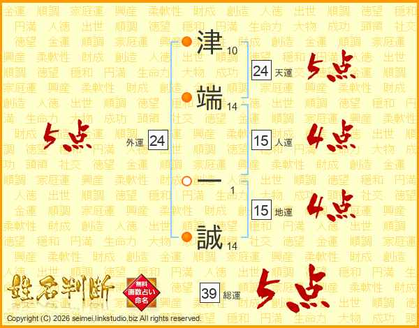 家系が持つ宿命的な運勢を表します。祖先から受け継いだ苗字ですので自分の力が及びません。家柄を象徴します。苗字の合計画数。