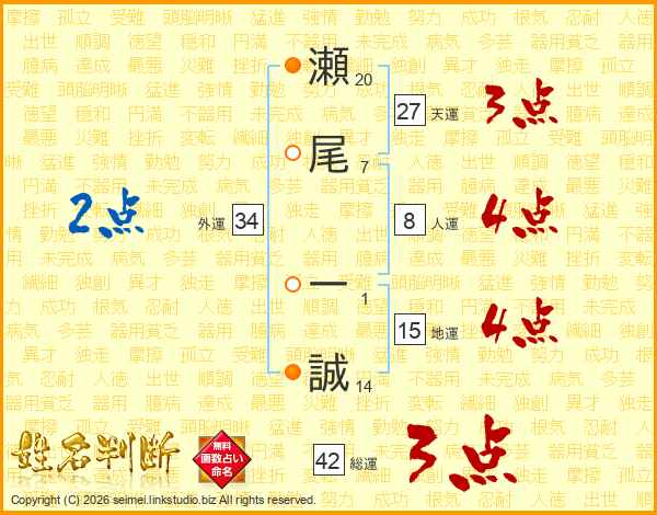 瀬尾一誠さんの総運は42画の3点!