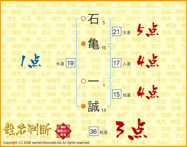石亀一誠さんの天運は21画の5点!